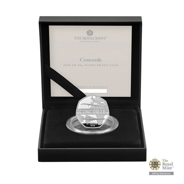 Silver 50p Concorde: 50th first commercial flight anniversary UK 2026 proof